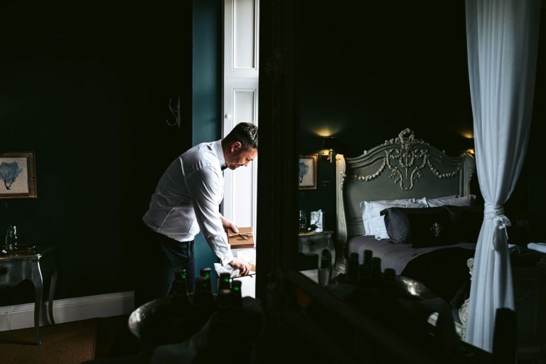 We have two Master Suites at Thicket Priory, arguably you could say three! The Buckingham Suite and the Vavasour Suite are both designed for wedding parties to get ready. Both suites are spacious, have mirrors galore, sitting areas to enjoy some drinks whilst getting ready, sound systems, a fan, and are flooded with natural light…every photographer’s dream!