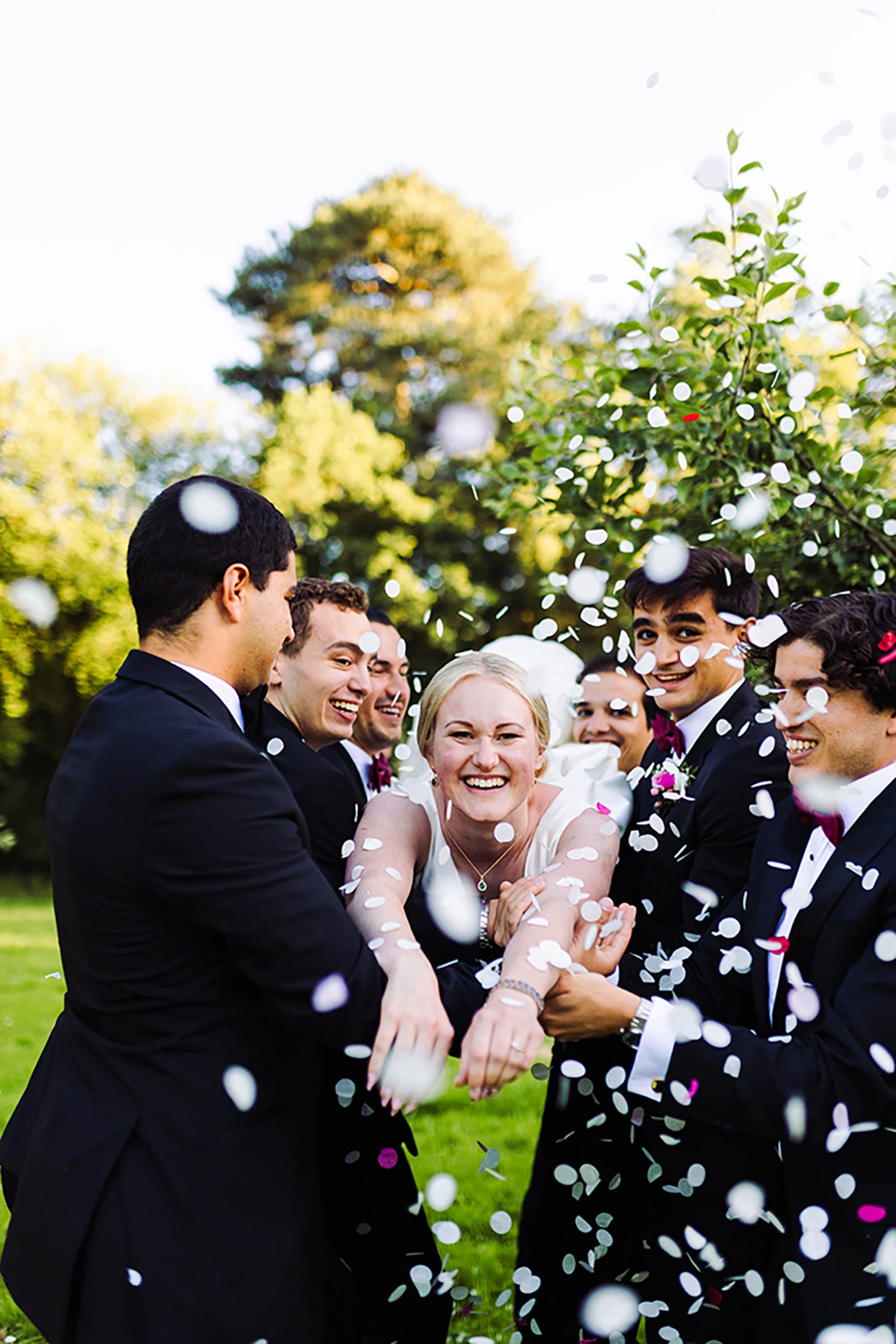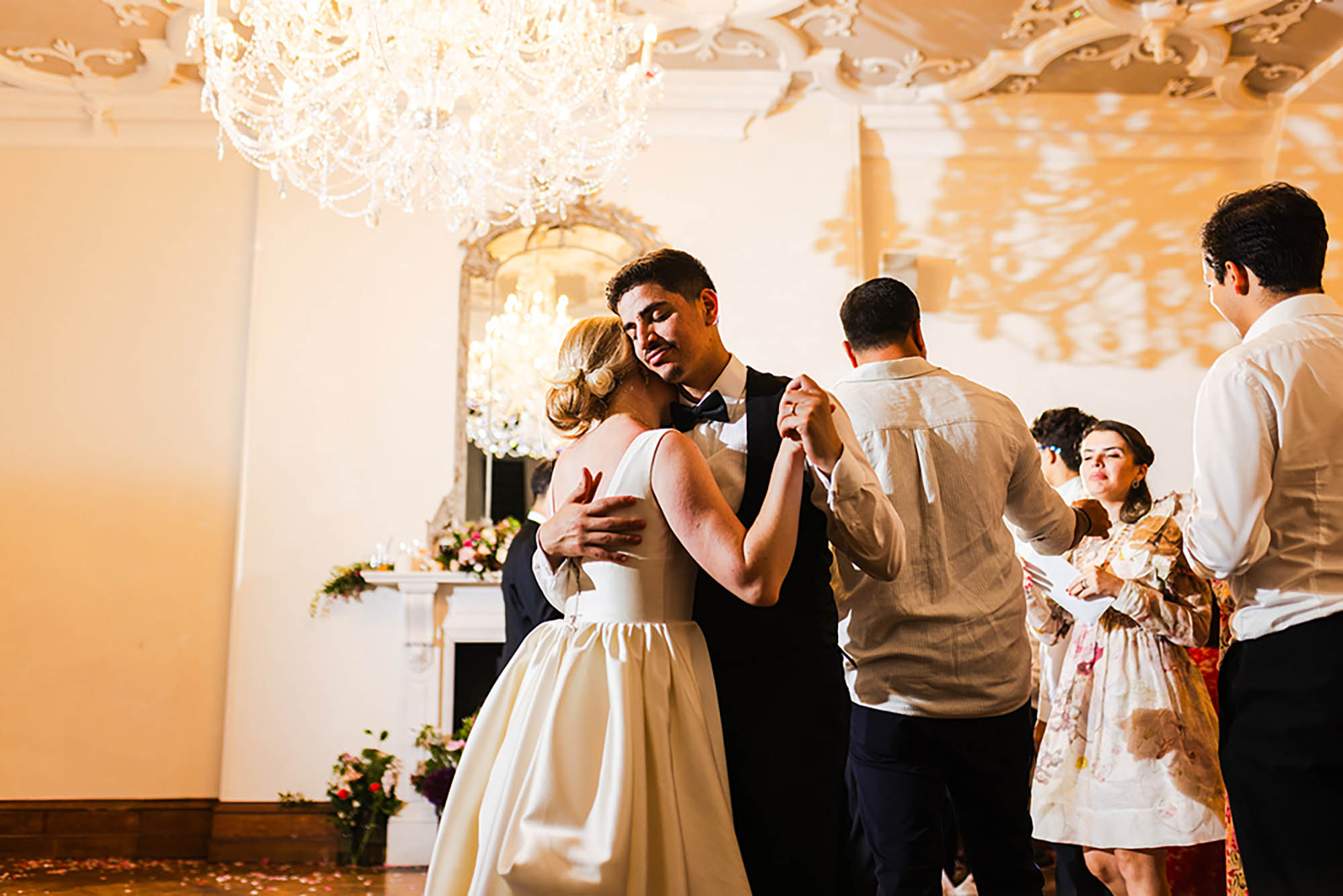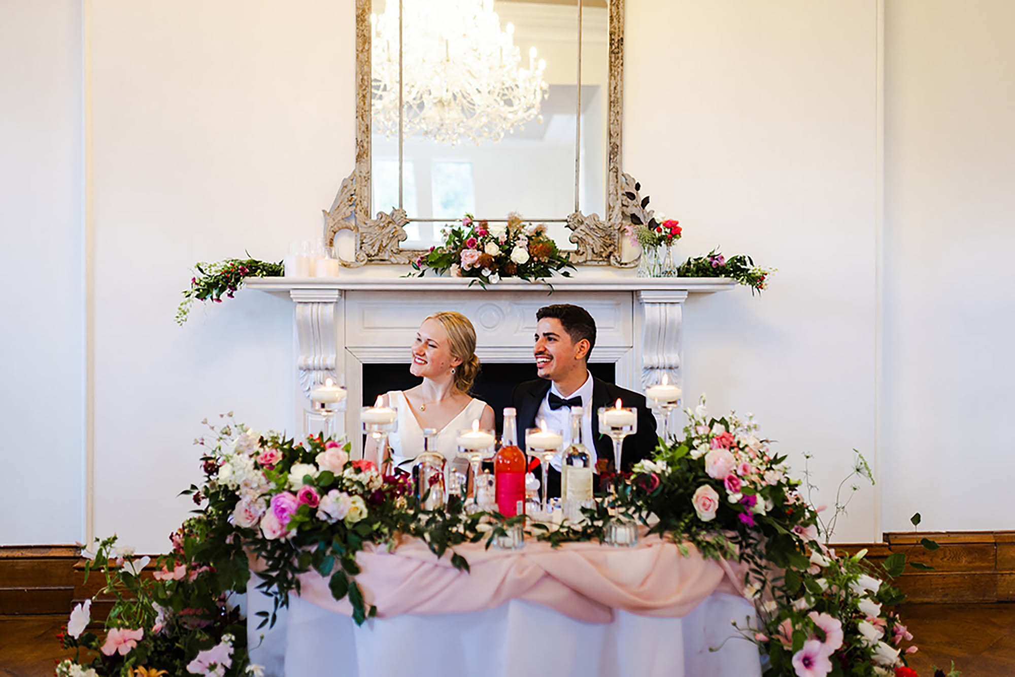 “We were excited to use the elegant setting of Thicket Priory for our wedding. We decided to opt for a black tie dresscode, but wanted to embrace the summer with a ‘summer garden party black tie’ theme. It was lovely to see our guests dressed up in tuxedos, but also in stunning dresses made of satin, or sparkling, or with beautiful florals.