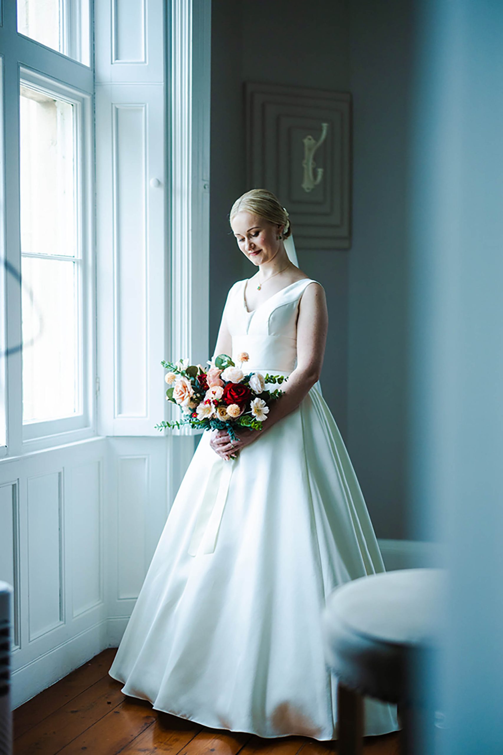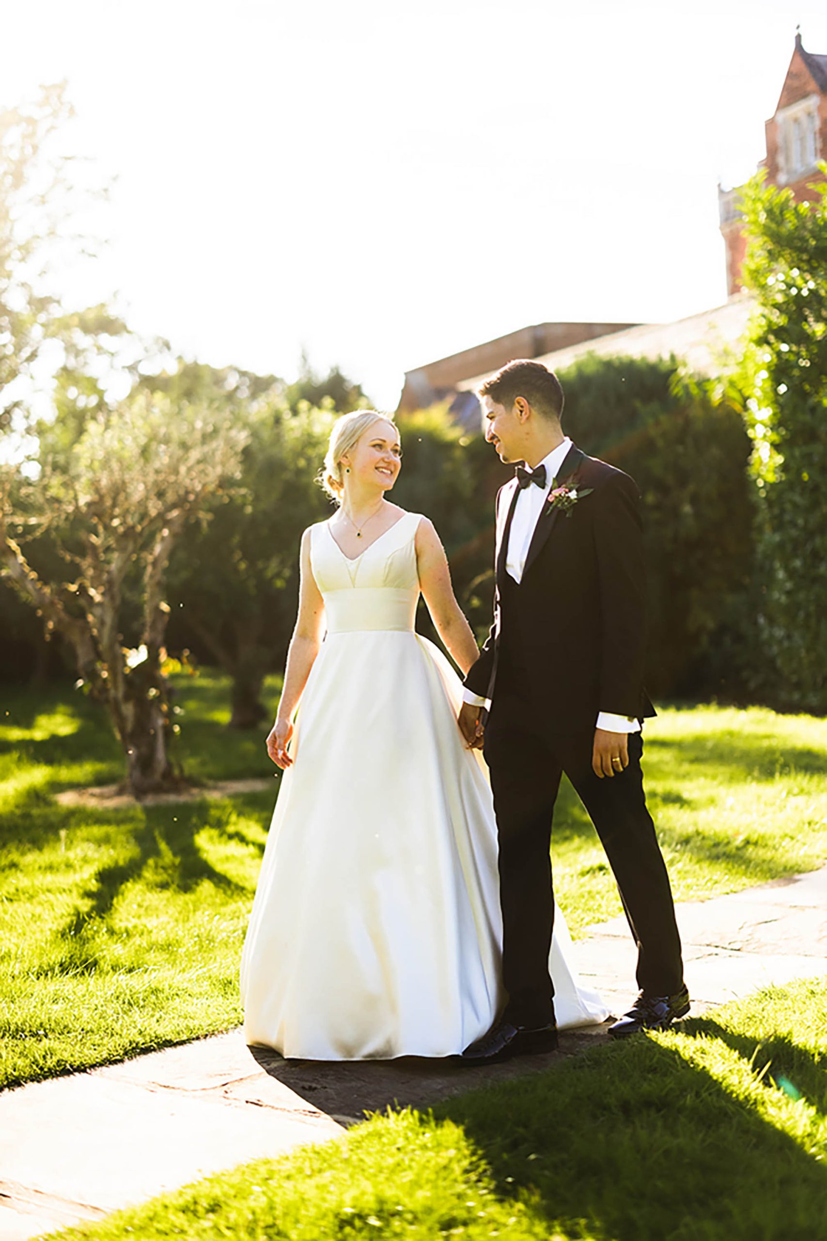 “Trial and error! I decided early on that I wanted my dress to be sustainable and therefore knew that I wanted a second-hand option, rather than a brand-new gown. I found a beautiful ‘Essense of Australia’ dress on facebook marketplace and went to try it on with my friend before bringing it back home. It was a stunning dress, but something just didn’t feel… right. It was eating away at me, until I finally gave in and said ‘this is just not my dress…’. The next time my mum (as well as Bashir’s sister) came to visit us in York, we decided to go to the Oxfam wedding dress shop and see if we are lucky enough to get in and look at some dresses. We were and in a matter of 30 minutes I found my perfect dress. It was very different from the lace mermaid gown I initially bought, but I loved the simplicity of the mikado fabric, the shape and rouging of the skirt. I am so happy with the dress I ended up wearing on my wedding day and wouldn’t change it a bit!