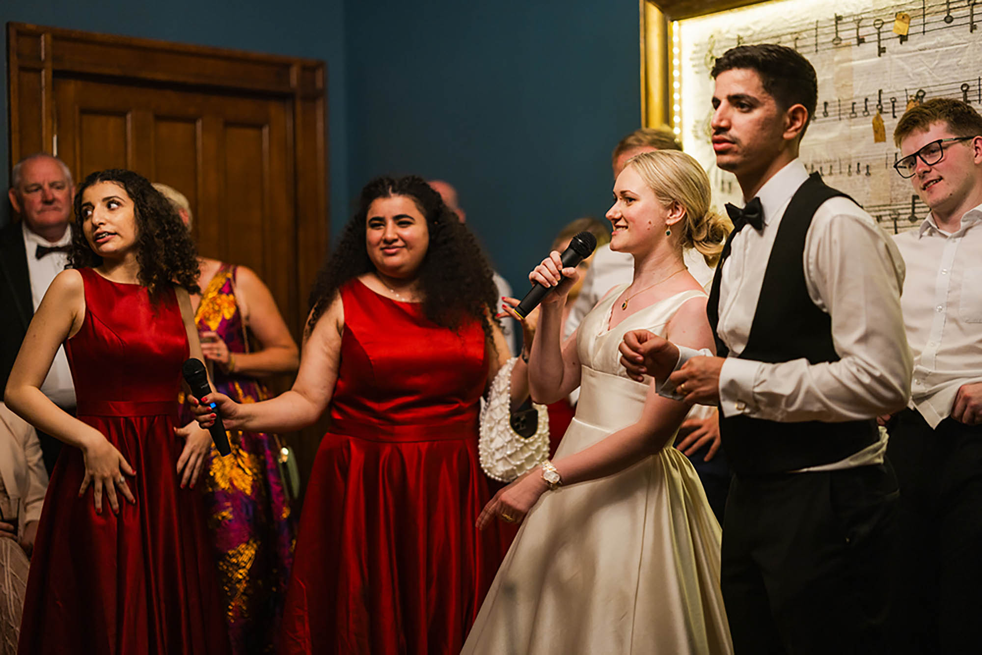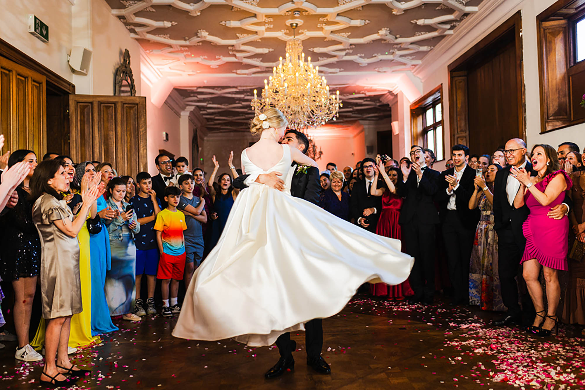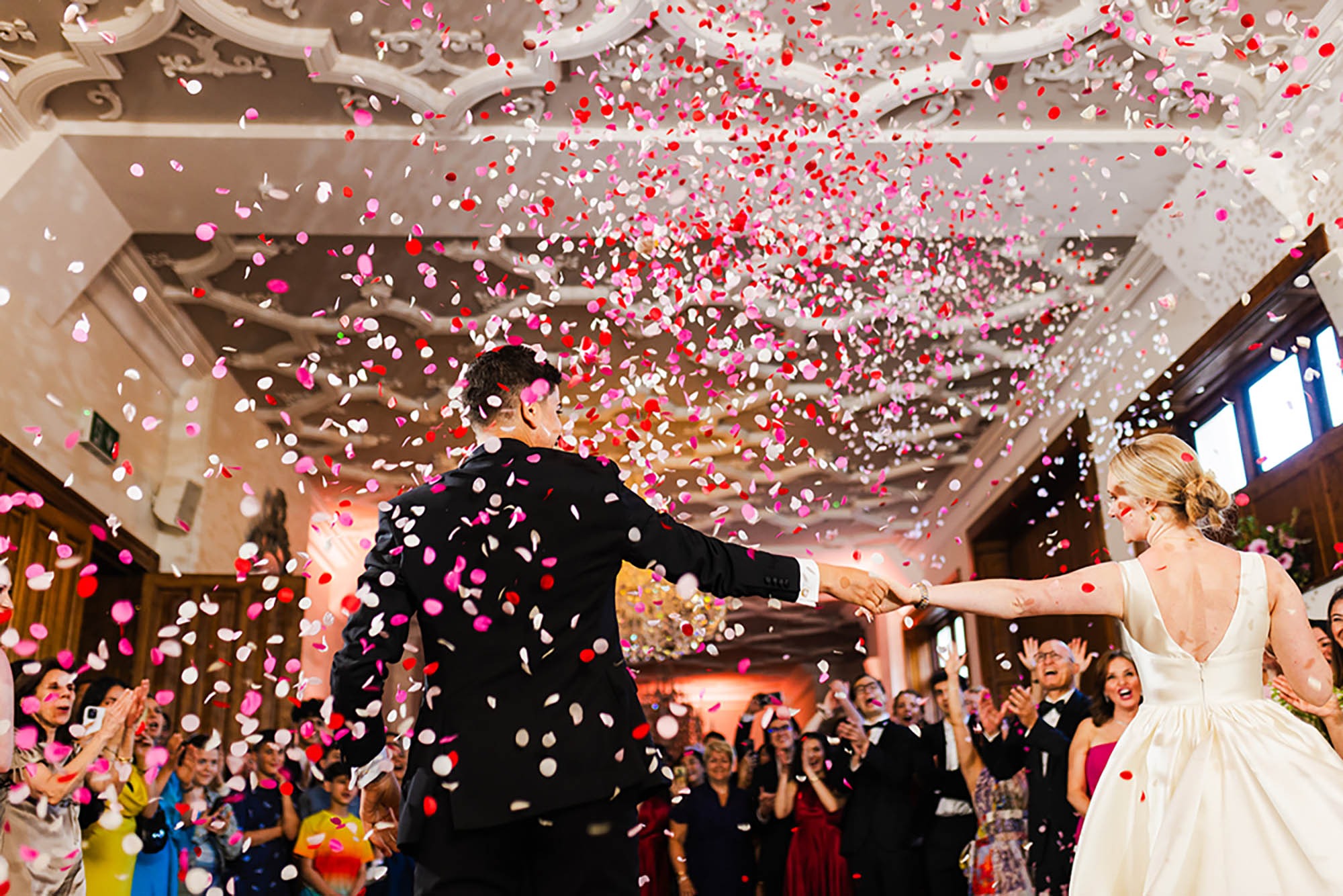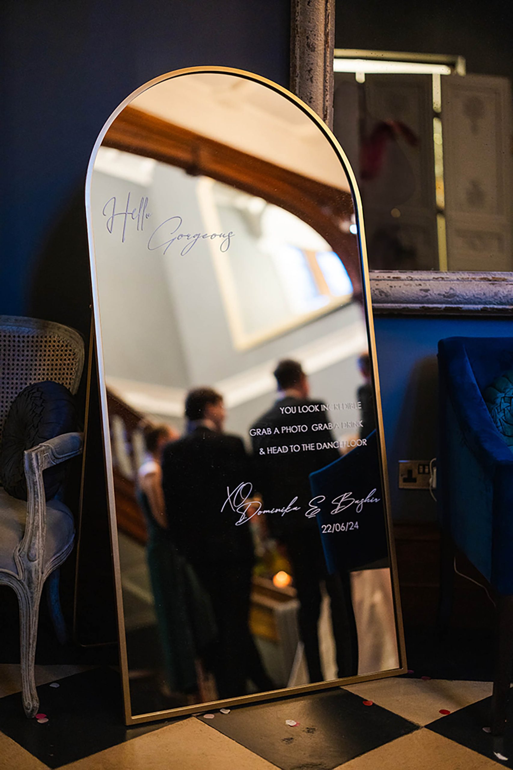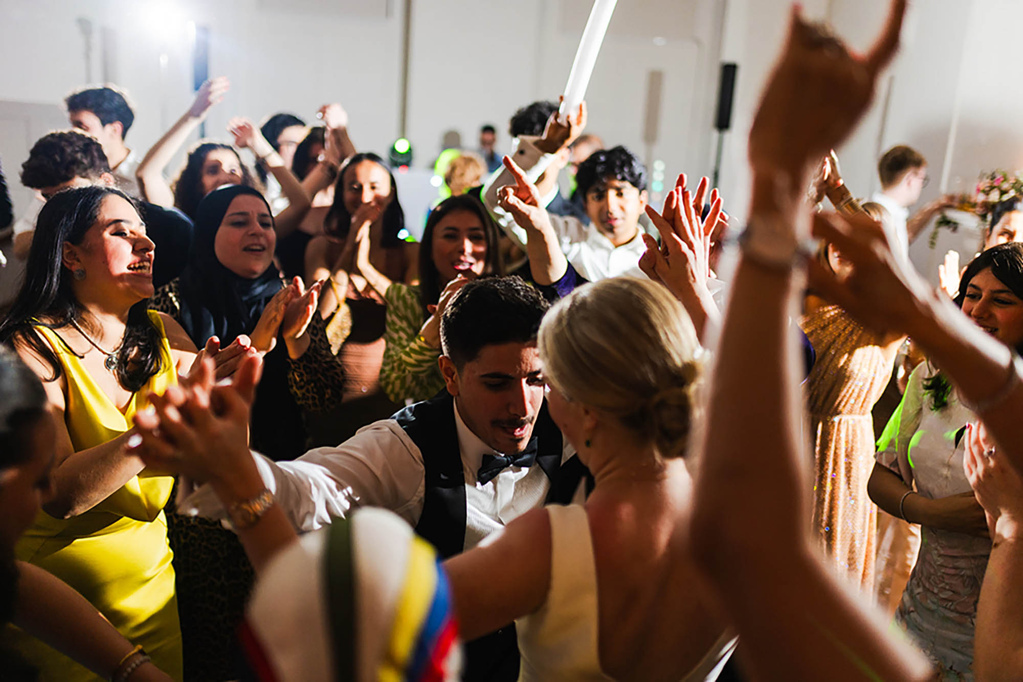 “Once the dancing started, we pulled out some props – which made for some hilarious memories and incredible photos. These included balloon champagne bottles, glow-up foam fingers, metalic wigs, fun glasses, and even a giant cardboard cut-out of our cats face! Definitely recommend adding some props to your dance floor!”