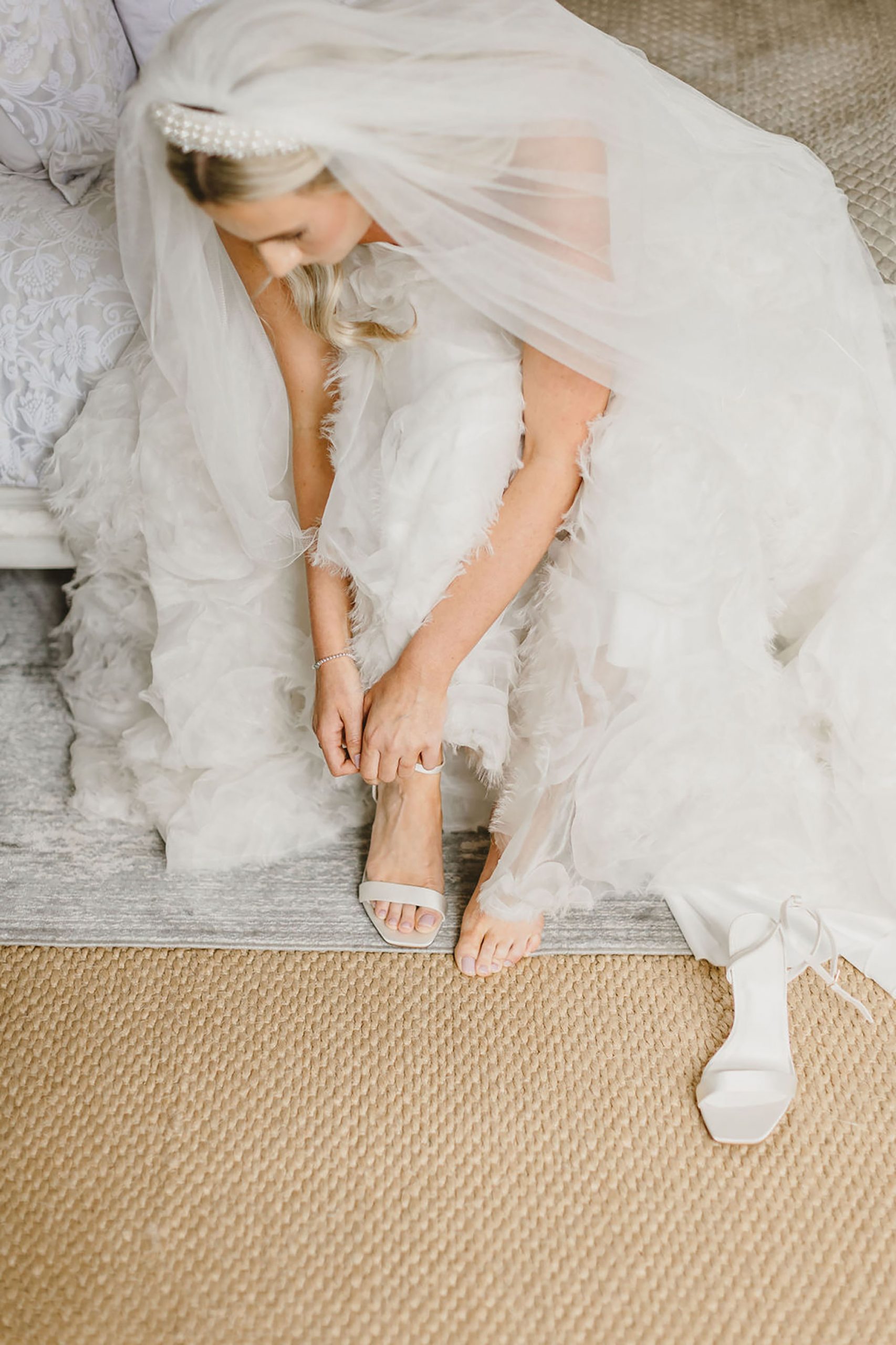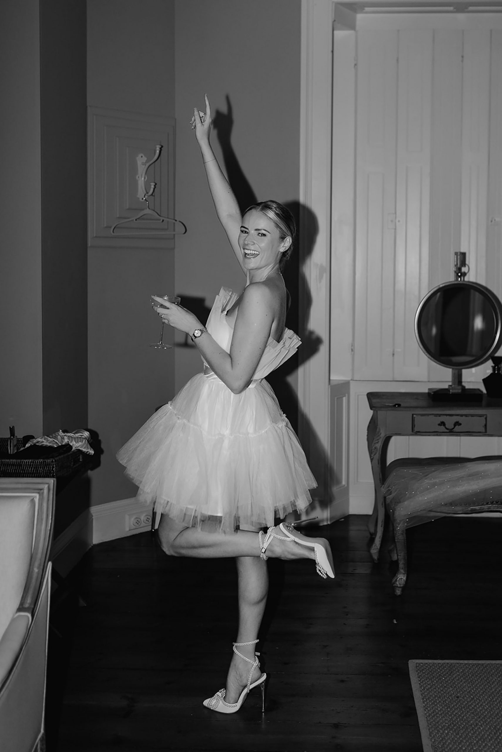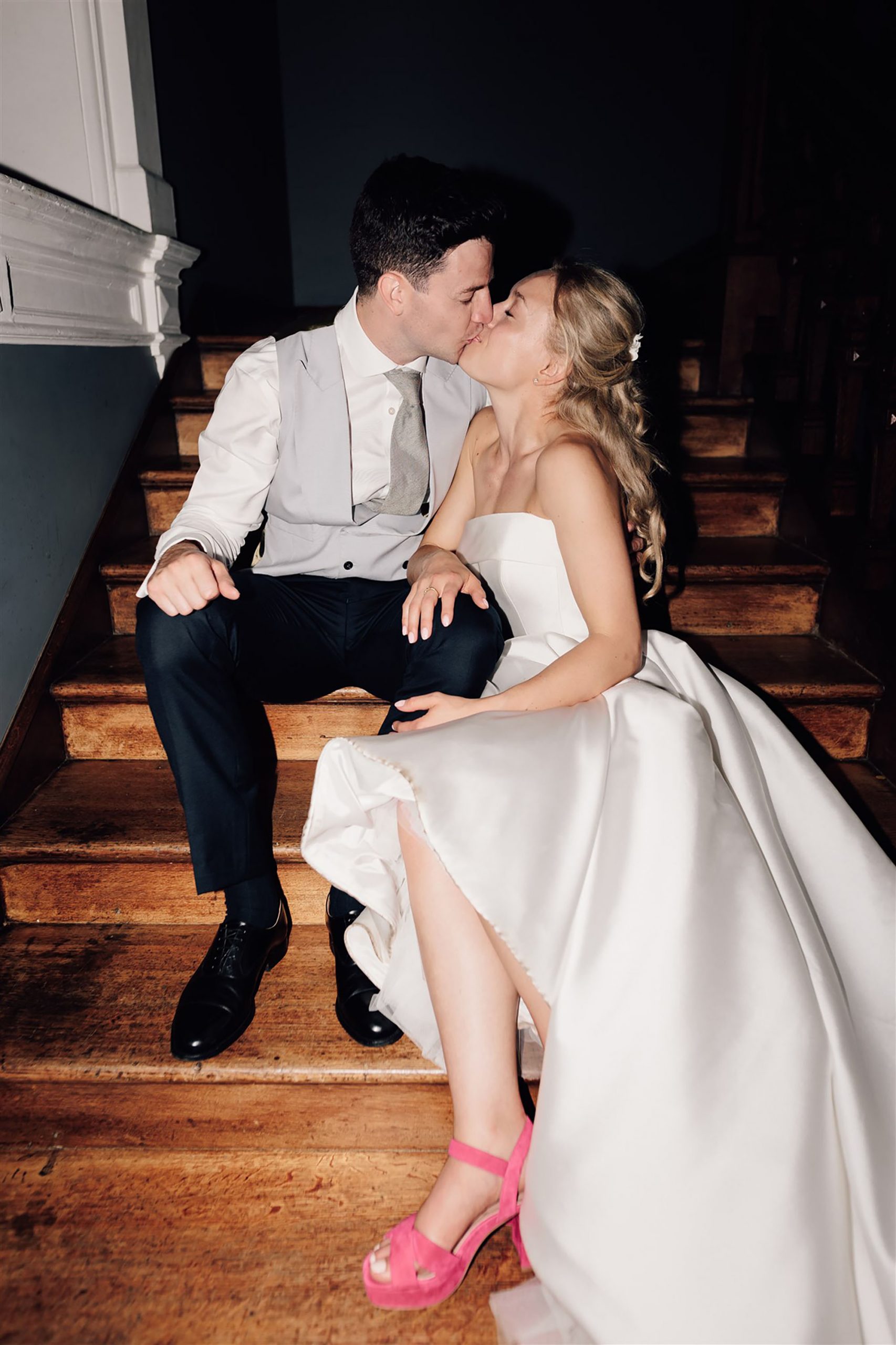 Another trend that is carrying over into 2024 is the Barbiecore trend. From sequinned night prior outfits to dramatic thigh high splits and sparkly heels because what better excuse to have your main character moment than on your wedding day! Pops of colour are a really fun way to lean into the Barbiecore trend through jewel toned flowers or floral accessories for the Grooms and Groomsman – be creative with your styling, and again have fun with your photographs!