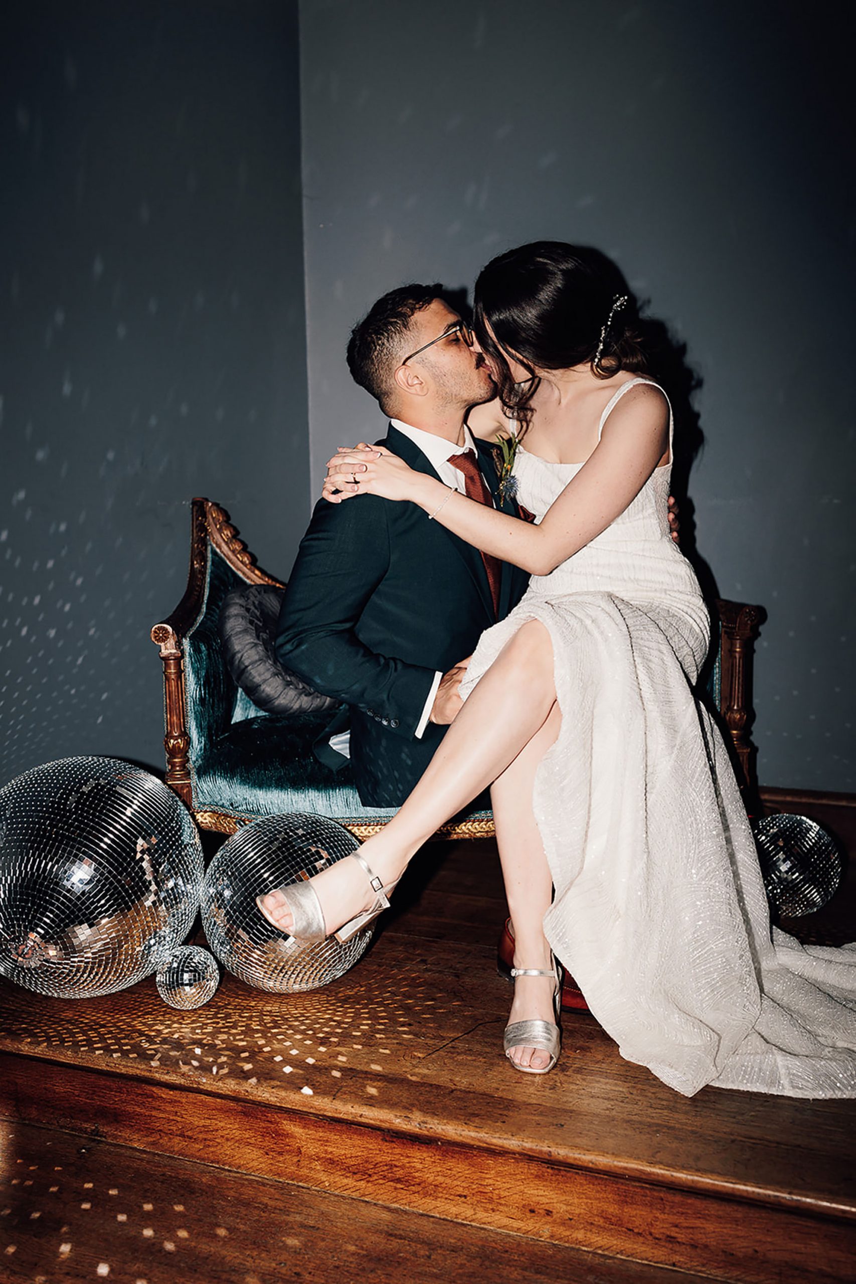 In terms of styling trends something that is due to popular in 2024 is 70s disco no doubt led by the highly popular release of Daisy Jones & the Six last year. With so many ways to incorporate disco such as sequins, coloured chunky heels and mini dresses for your evening outfit change, taking a nod from 70s inspired fashion is the perfect way to make a bold statement for your evening attire and perfect for the dancefloor! The biggest inspiration taken from the discocore trend is expected to be the inclusion of shimmering disco balls, from fireplace decor to accessories that can be used as props or just to add a bit of atmosphere to the dancefloor. Whether you are having a classic elegant wedding or opting for a more colourful aesthetic, disco balls are the perfect versatile accessory.