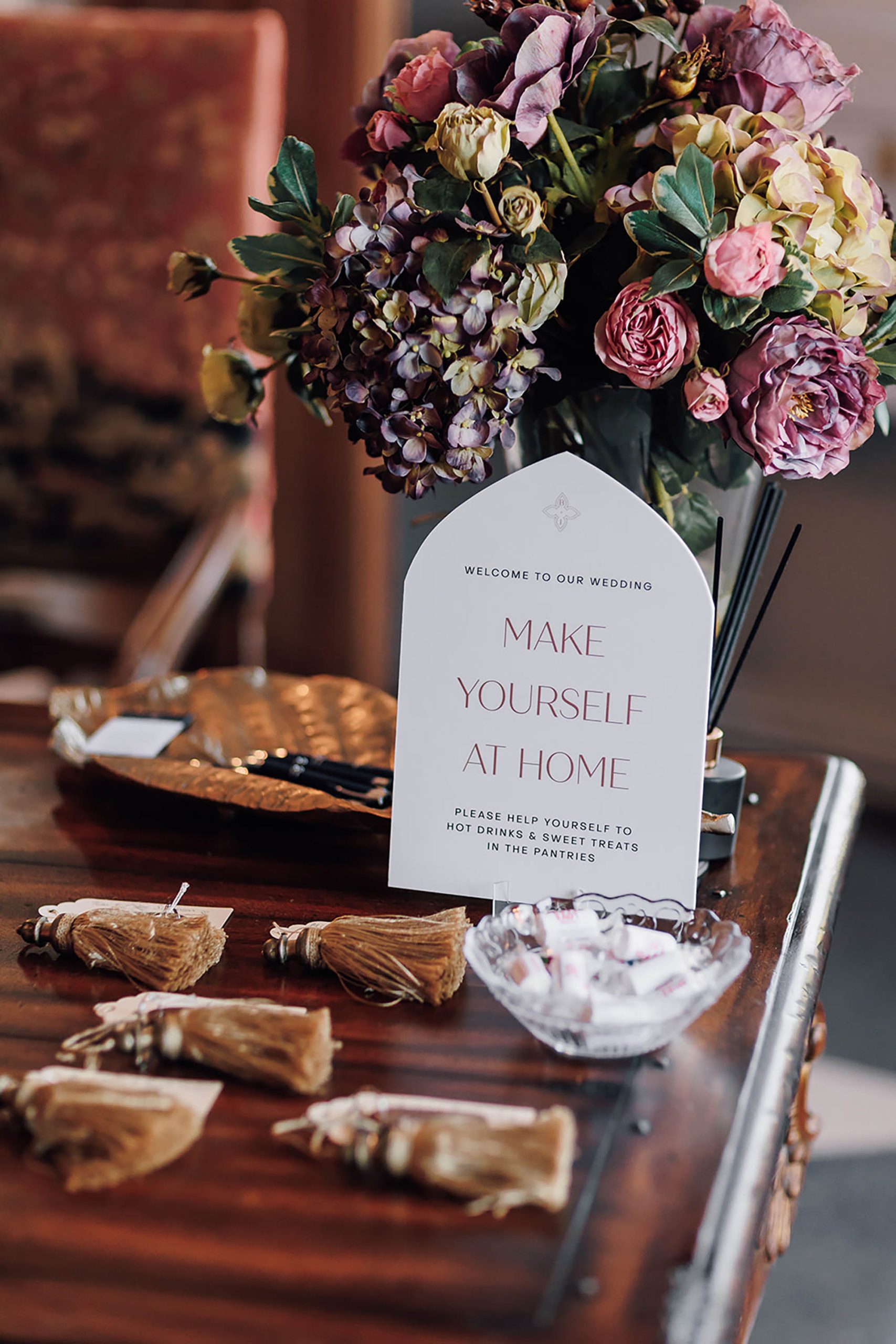 Thoughtful details make a big difference here. Transport for guests staying nearby or attending offsite ceremonies helps everything run smoothly. Welcome gifts, itineraries waiting in bedrooms at check-in, and home-baked goods in the pantries all add to the experience.