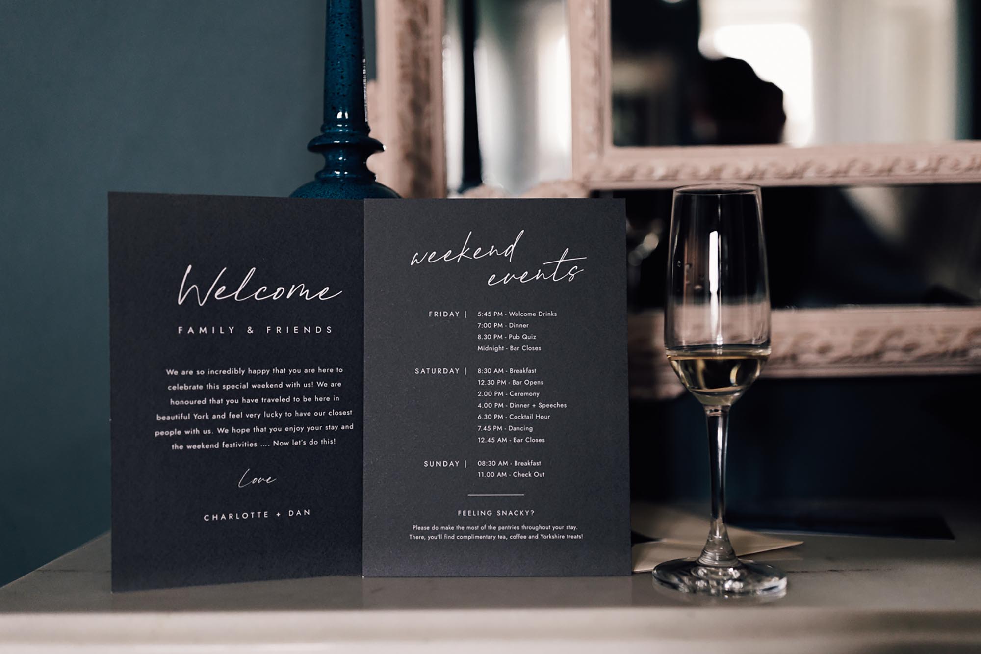 Cocktail hours would need to be pre-arranged, these generally work really well between your day reception and evening reception, with the espresso martini being the firm favourite for a ‘pick-me-up’.