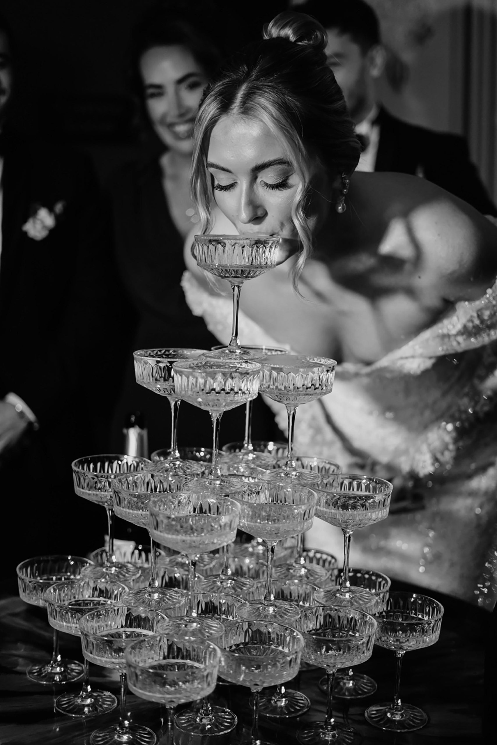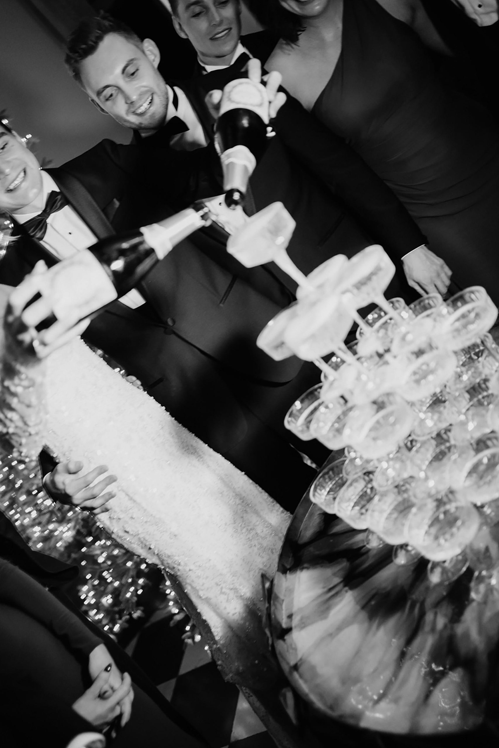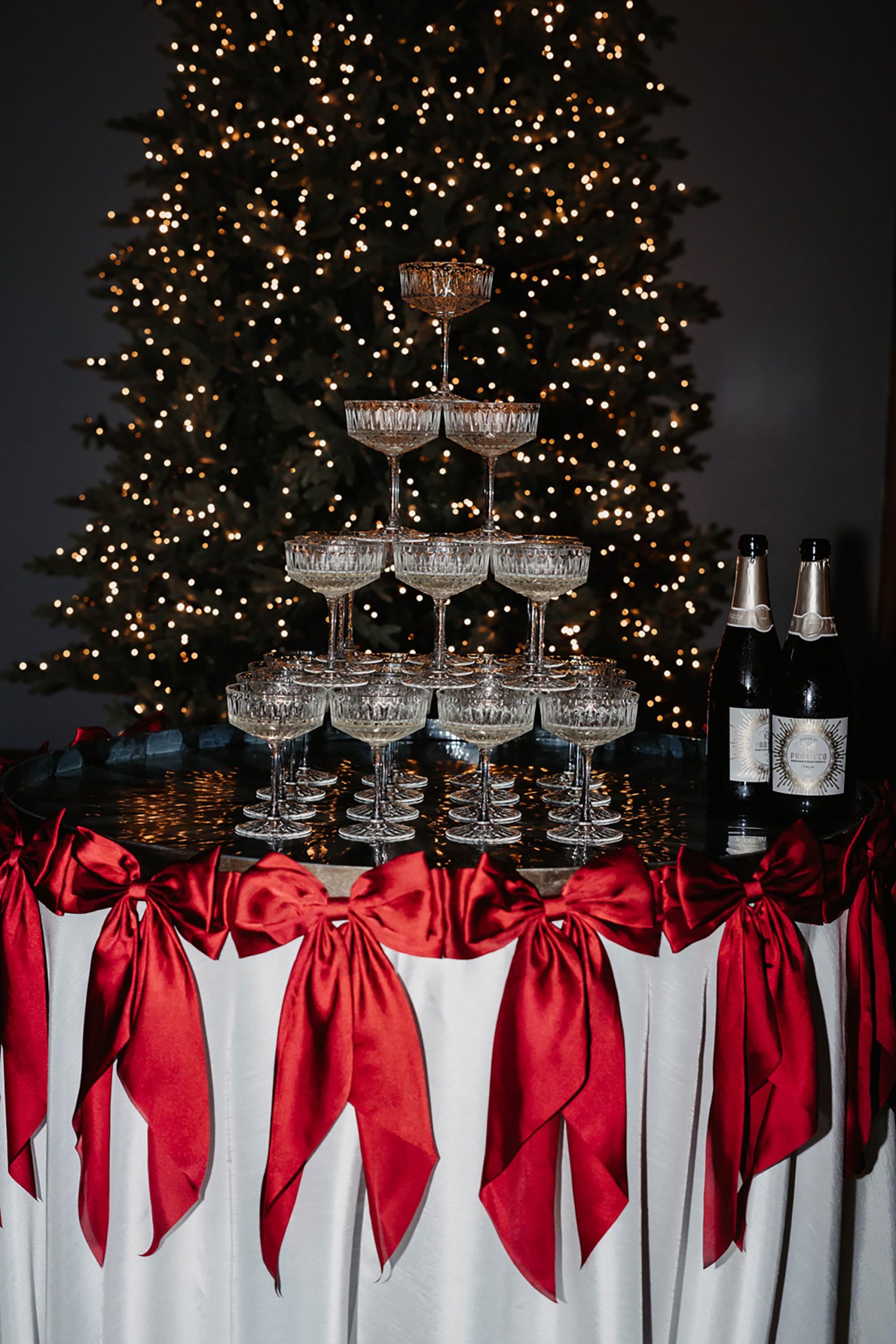 Issy & Miles were a Winter wedding with trends galore. Their room décor was on point so guests could be wined and dined in opulence. They had espresso martini cocktail hour and a gorgeous champagne tower in front of our sparkling Christmas tree.
